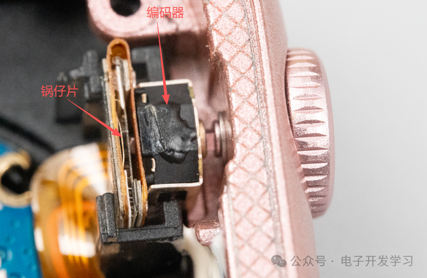 安装上去就是这个效果,往里按可以顶到里面的锅仔片,相当于按键,旋转的时候带动编码器。