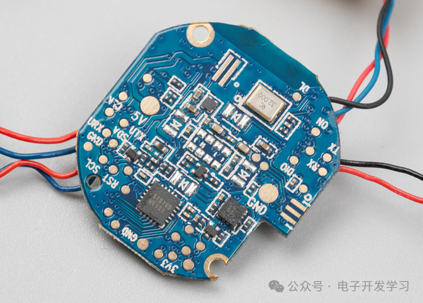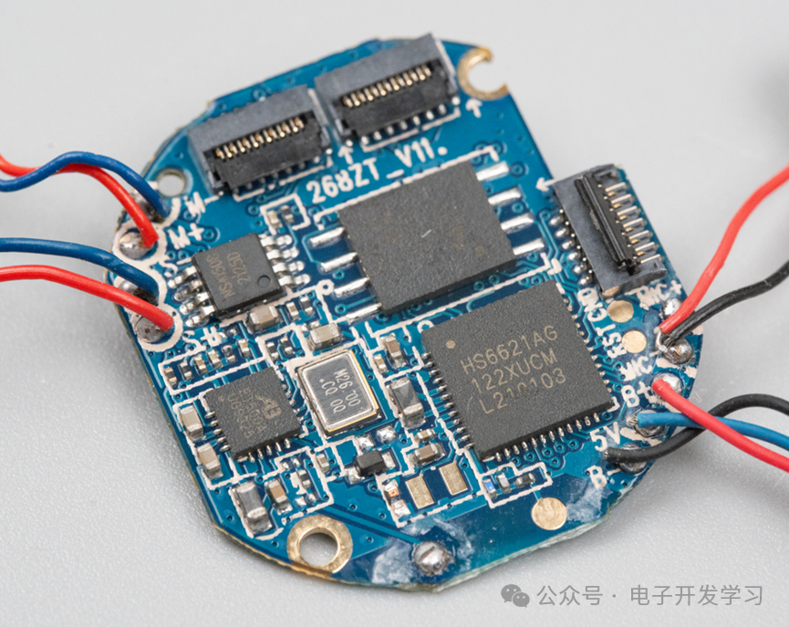 电路板正面。可以看到主控是HS6621AG,这是来自昂瑞微蓝牙5.1芯片。
