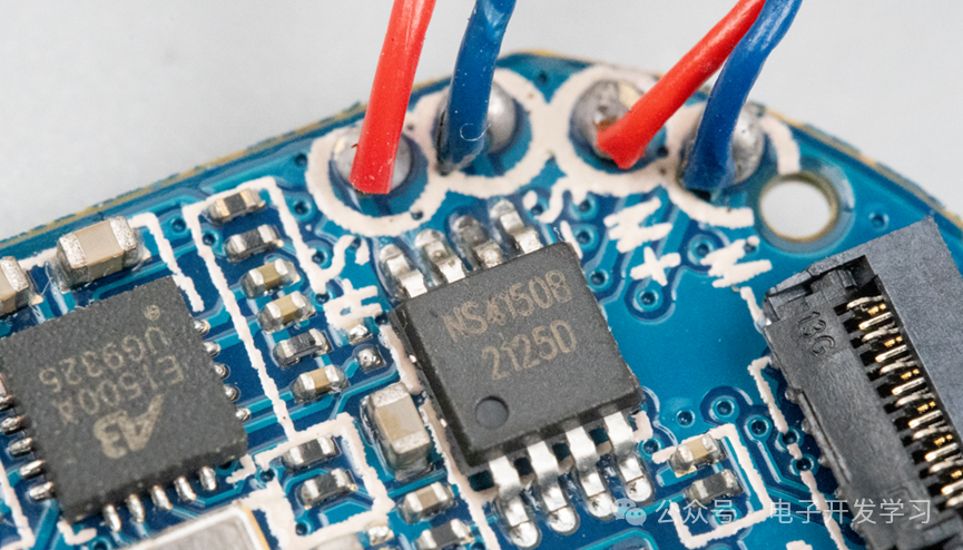 这颗封装为MSOP-8的器件,来自纳芯威的NS4150B,是一颗音频功率放大IC,输出功率为3Wx1@4Ω,用来驱动扬声器。