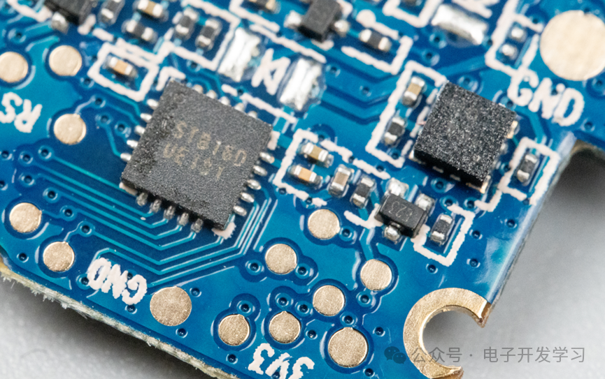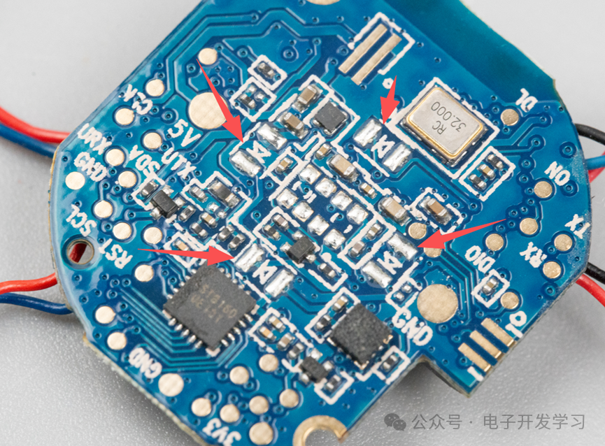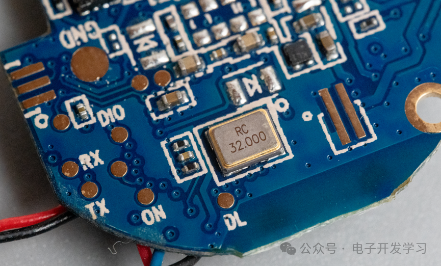 板子背面还有一颗32MHz的晶振,布局位置刚好与板子正面的主控芯片相对应。