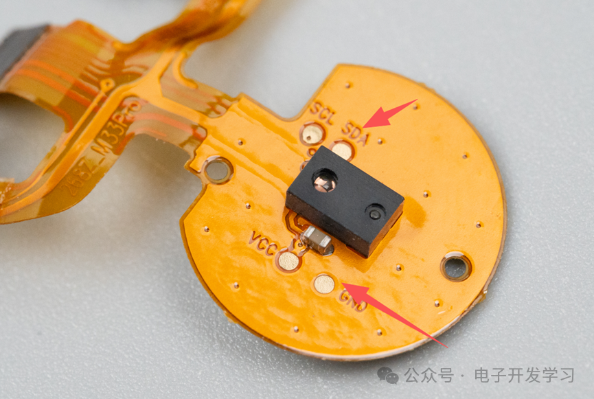 心率传感器细节。板子上还引出了VCC\GND\SCL\SDA的测试点。