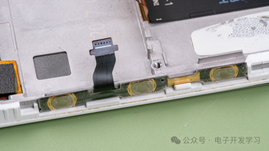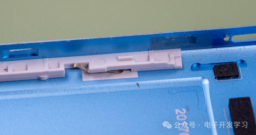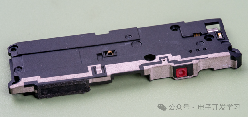 后壳非常干净,除了按键和接地弹片之外,没有其他任何配件安装在后壳上。