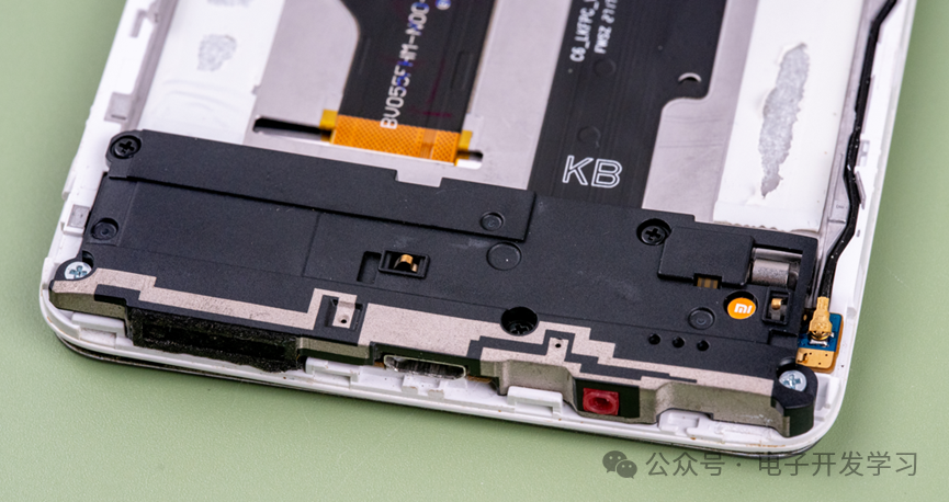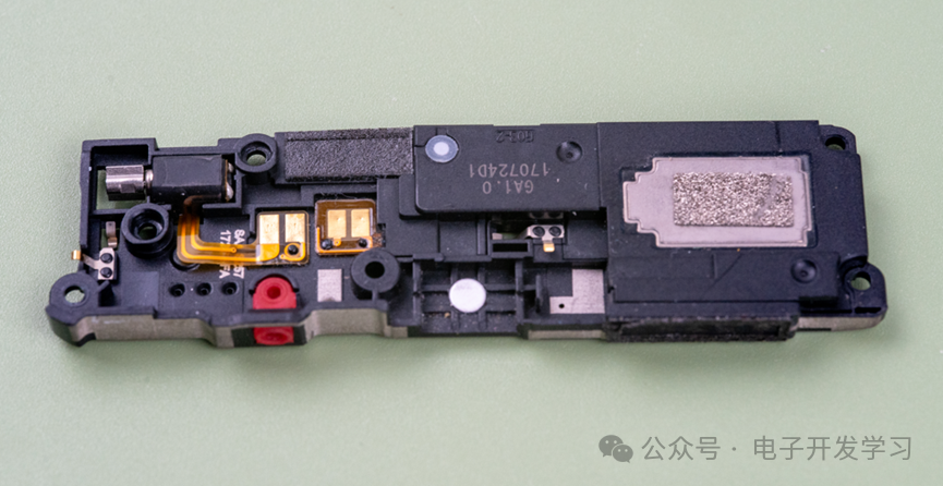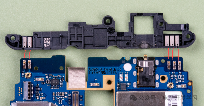 马达和扬声器都是通过弹片和下面的电路板接触。