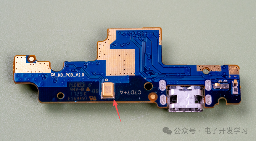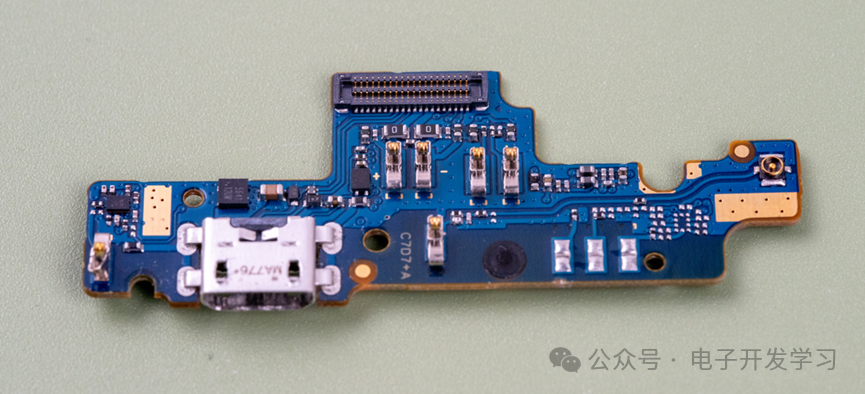 底部电路板。这个手机是2017年的,用的是的Micro-USB接口。