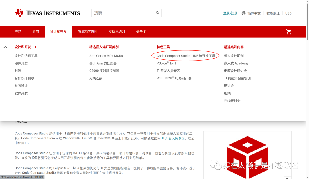 CCS的下载可以去Ti公司的官网(CCSTUDIO IDE、配置、编译器或调试器 | TI.com.cn),在设计和开发中选择CCS,之后选择第二个选项,下载对应的系统版本即可。