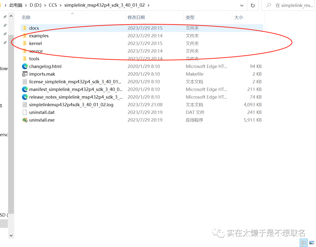 在这个链接中SIMPLELINK-MSP432-SDK Software development kit (SDK) | TI.com打开MSP432SDK下载地址(打不开的话去CSDN搜一下相关教程)之后安装MSP432SDK,安装完成后,在安装目录下就会有这些文件,比如example就是官方的例程,source是一些驱动文件等等。