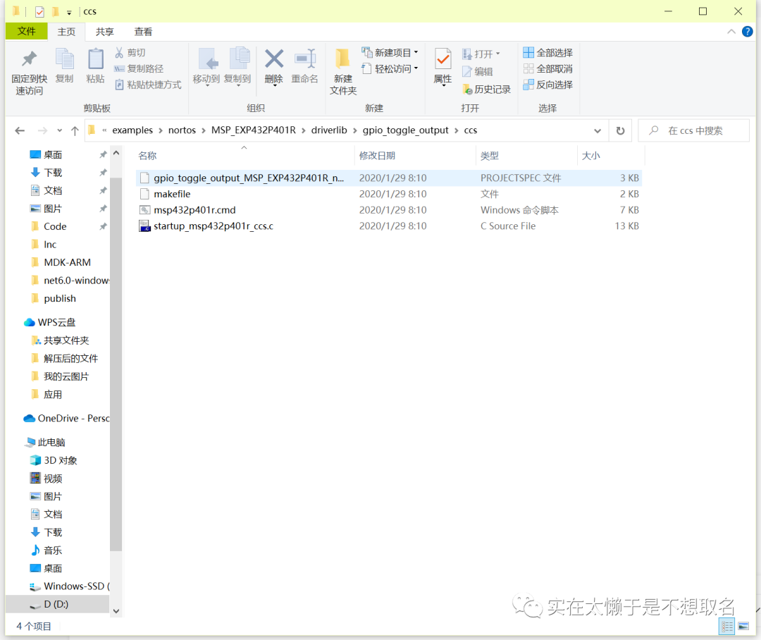 可以看到资源管理器中,工作区主要包含着MSP432的系统头文件,启动文件,以及主函数,其中例程的主函数均以该例程的名称命名。