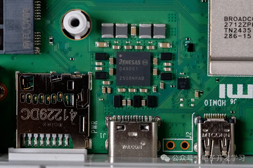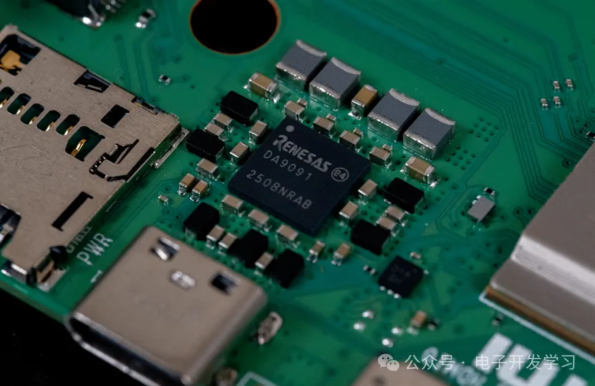 PMIC电源管理芯片是来自瑞萨的DA9091。数了一下周围的电感,这个PMIC最少有11路DC-DC输出。