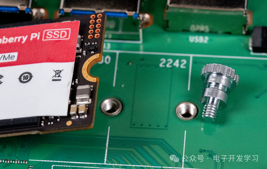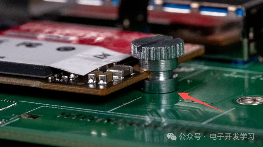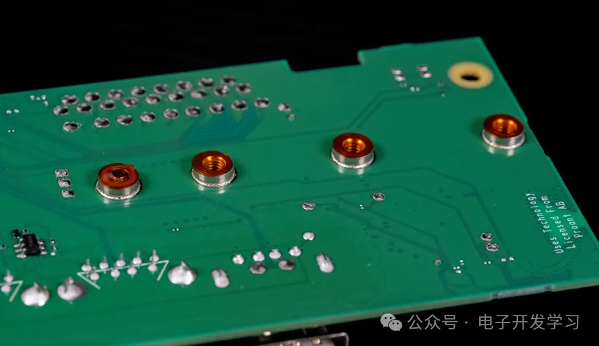 固态硬盘的固定螺母焊接在板子背面。