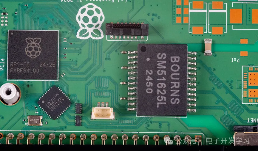 树莓派PR1背面的去耦电容。