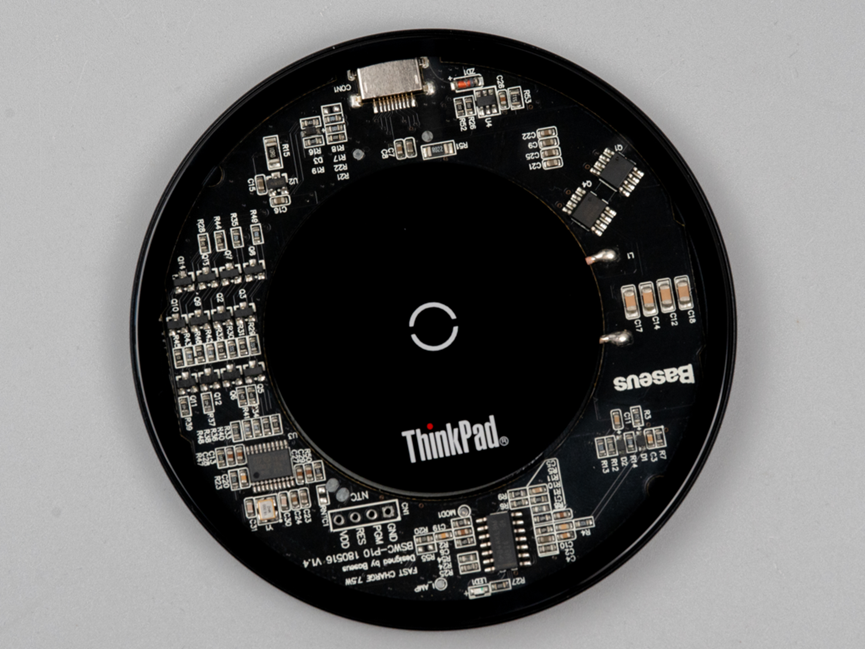 看了一下这玩意输入才最大15W,型号是BSWC-P10,从这个型号里就可以看出无线充电的最大功率是10W,那还充个屁啊,测都不用测了,直接拆解。另外这个好像是倍思给ThinkPad做的。