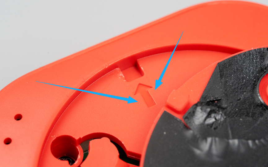 往回装的时候我纳闷这个箭头和它指的这个凹槽是干啥的,但是后来看了一眼底下的硅胶软垫瞬间明白了,用来定位的。毕竟硅胶软垫上丝印了两个按键,如果位置对不好可能就错位了或者反了。这该死的设计细节,真令人舒服。