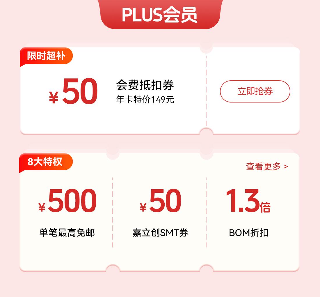 2月2日-4日,登录立创商城首页或超级会员日活动页,即可随机解锁1张10~1000元元器件现货券!即日起前往活动页面参与签到,累计签到5次,还能额外获得1次红包雨抽奖机会!