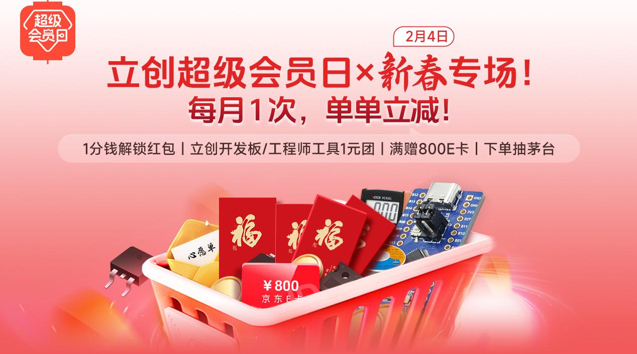 眼看马年春节越来越近,大家的春节放假安排都出来了吗?各位电子人,是不是都在摩拳擦掌采购年货了呢?要我说啊,现在逛商场、逛超市,都不如来逛立创2月新春超级会员日!