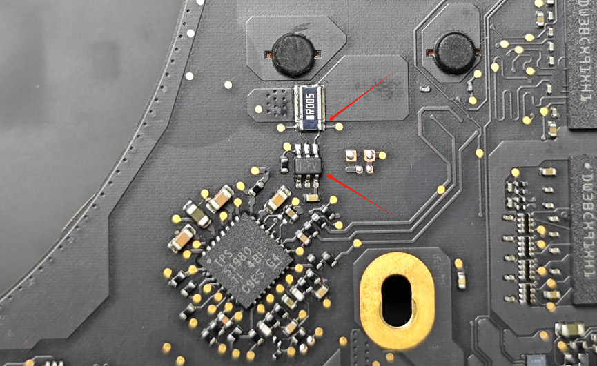 仔细看了一下电路板,发现一个采样电阻,采用的开尔文连接,旁边的SOT23-6器件是电流传感器。