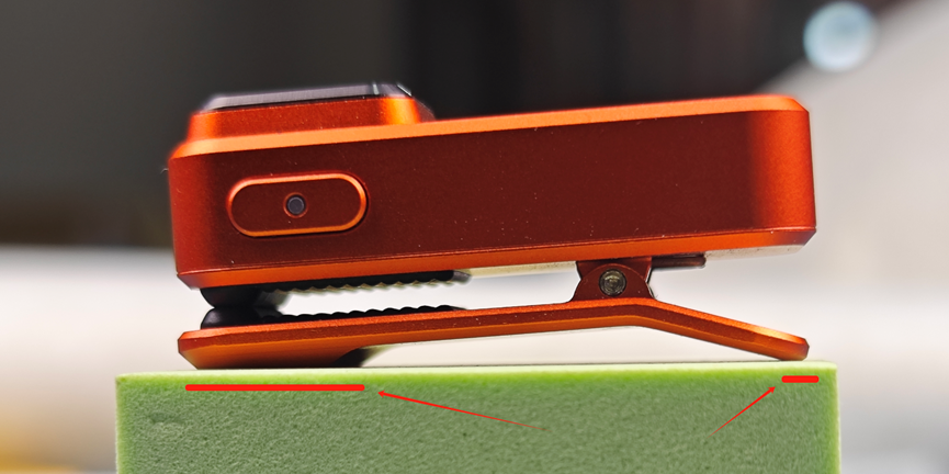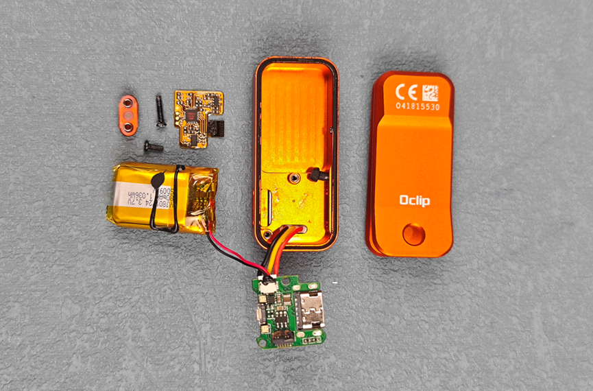 背面是二维码和唯一序列号,以及型号Oclip丝印。有一个小细节是,把这个夹子朝下放在桌面上,会发现夹子头部刚好有一个斜面,这个斜面和夹子的尾部在一个面上,这样放在桌面上非常稳定。小小的细节看得出产品经理还是非常重视细节的。