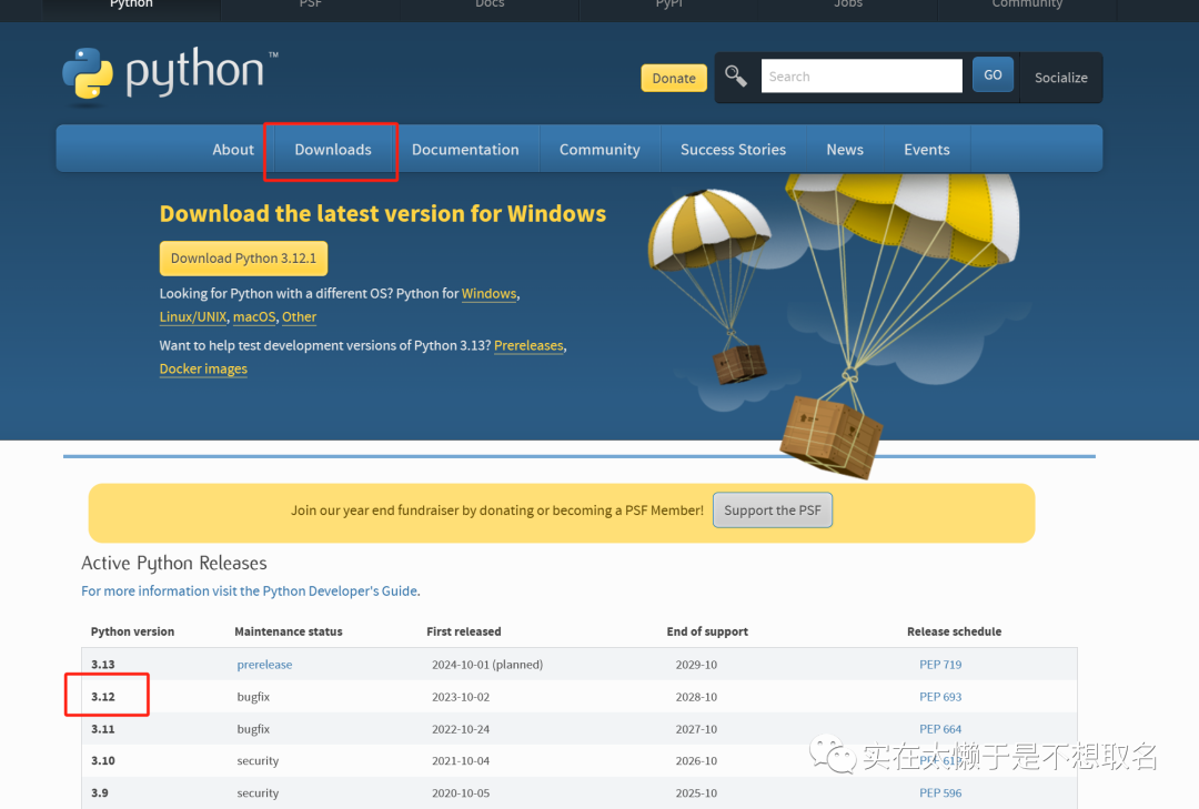 某度搜索Python官网,进入官网之后,在下载界面找到我们的Python最新稳定版 现在最新的稳定版是3.12,我当时下的比较早是3.7(后来更新到3.10)不过只要大版本相同,区别都不大。