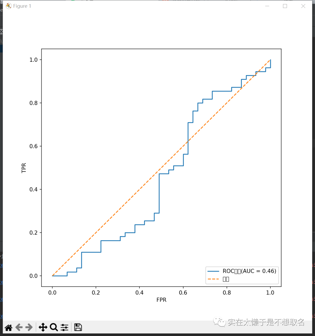 最后利用matplotlib生成我们的图像并显示就完成了我们的ROC曲线的绘制。
