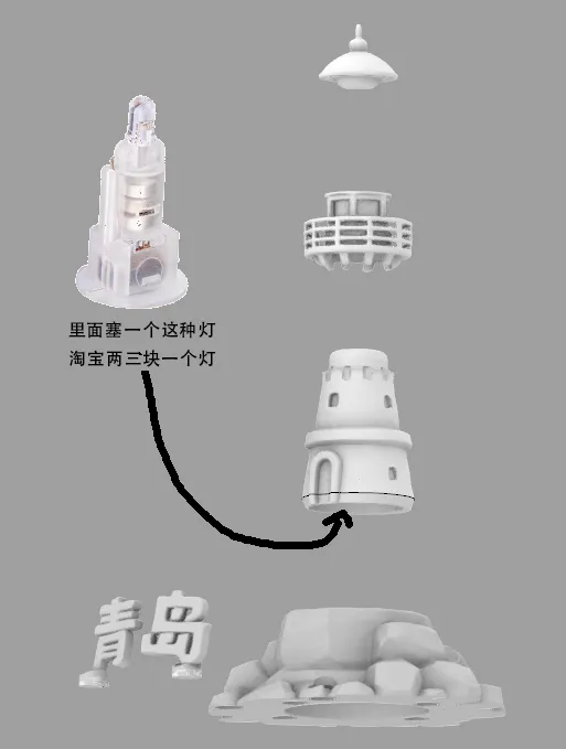 🔸设计灵感:对标青岛真实灯塔,内部可置暖光灯,既是文创摆件,也是夜晚的温馨小夜灯,3D打印造型精致又可爱~
