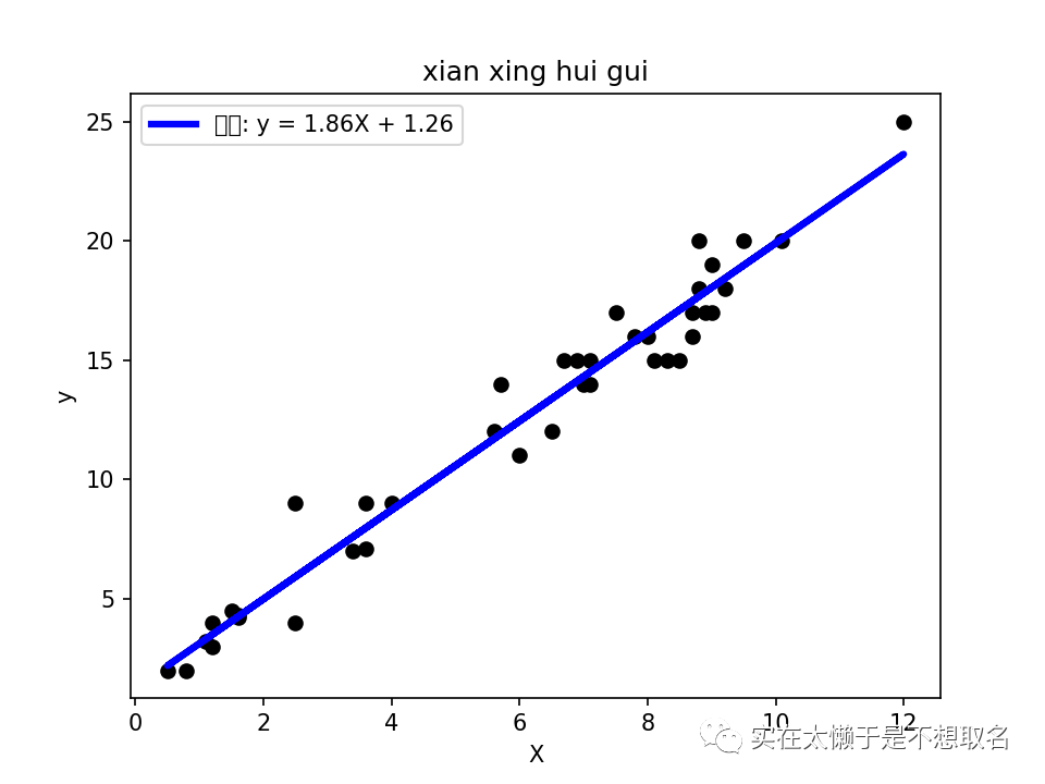 接着创建一个线性回归模型,对我们的X和Y进行线性回归拟合
