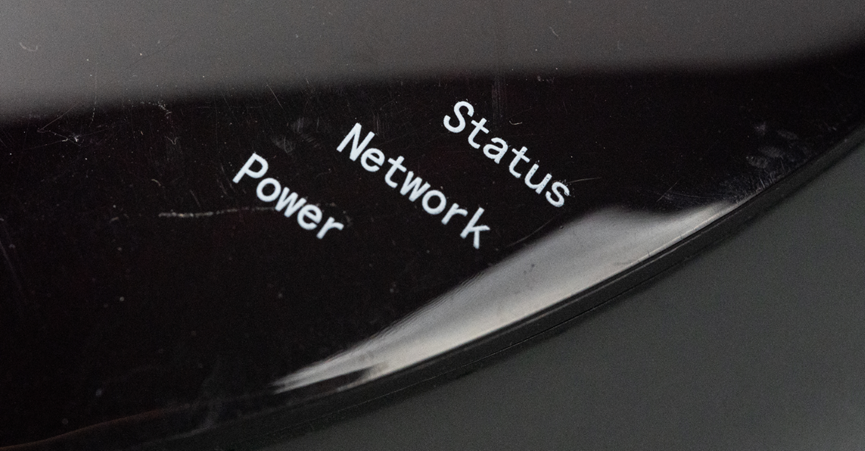 外壳边缘有三个指示灯,分别是Status、Network、Power。