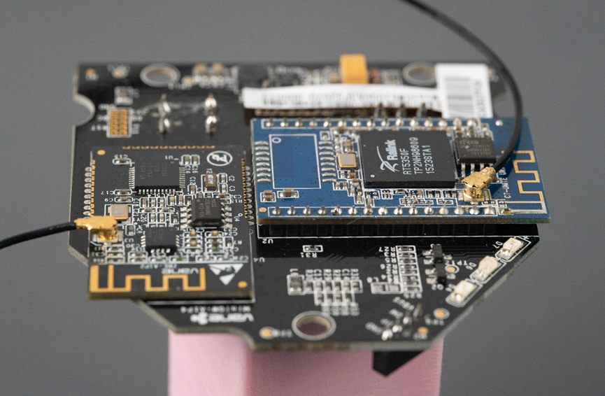 打开之后,一个底板上焊接了两个无线模块,无线模块的天线都通过ipex座子引出。