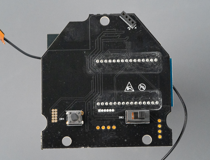 板子背面就比较干净了。只有一个按键、一个拨段开关、一个4P 2.54排母。上面的4P 2.54排母是用来连接Micro USB子板的。