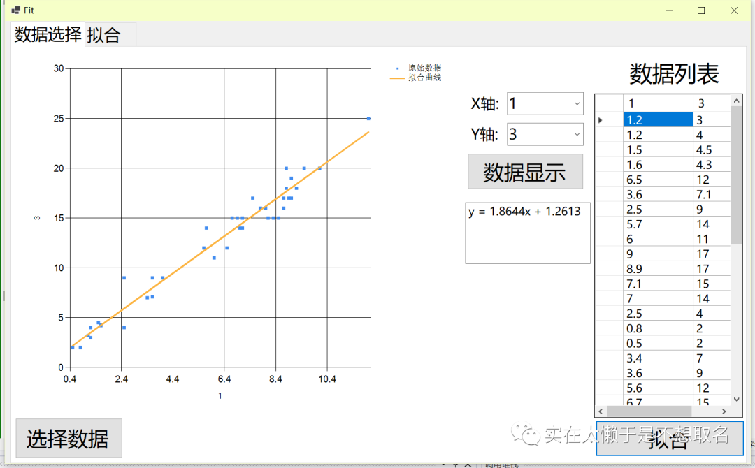 我们简单的绘制一个窗体,其中可以进行选择数据,显示原始数据以及进行数据拟合。