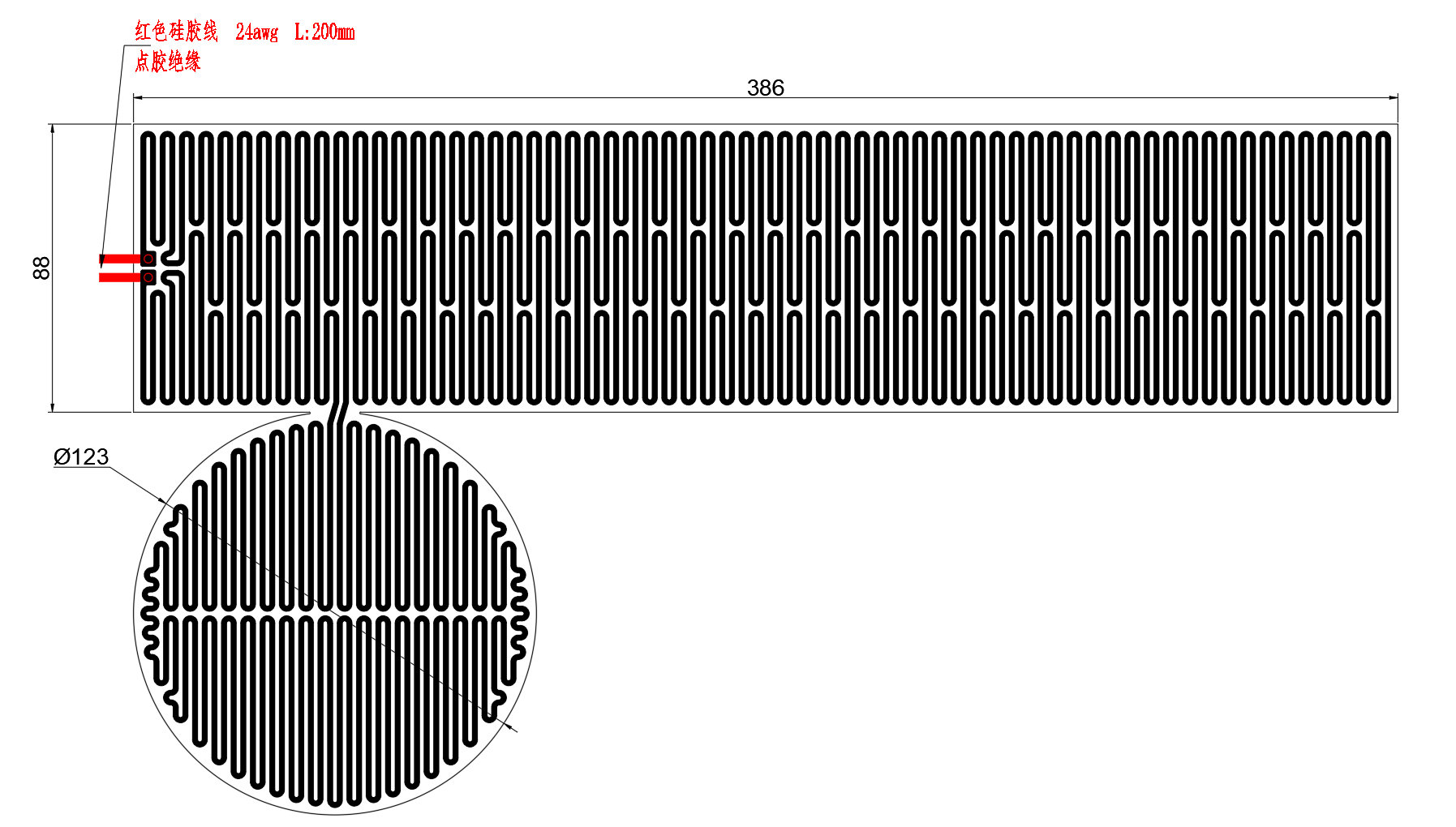 这是这款发热片的设计图纸和下单参数,感兴趣的同学可以按照以下发热片参数复刻: