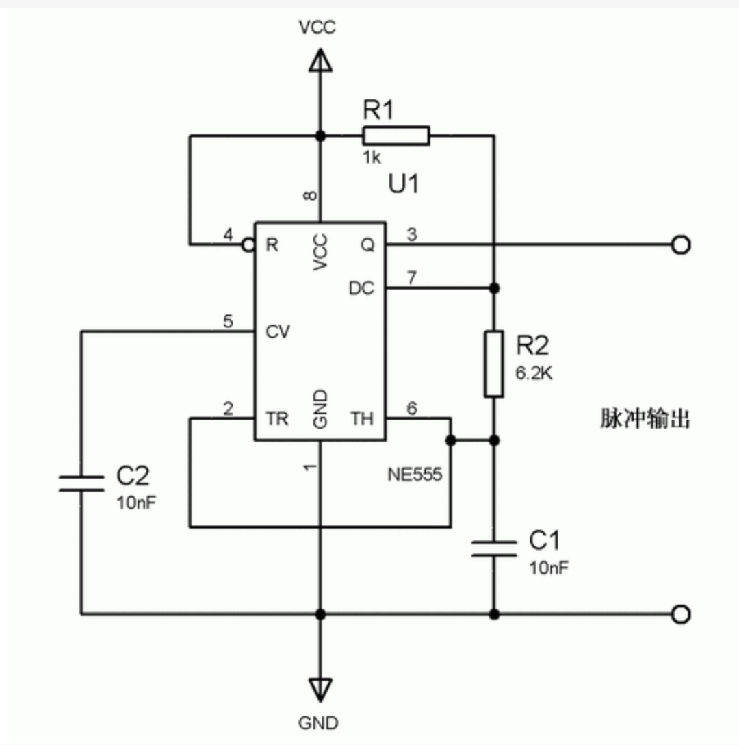 上图这种利用NE555的无稳态电路被广泛的使用,利用R1和R2以及C1构成的充电放电电路在这个特定的电路之下使得3脚输出一个频率的方波