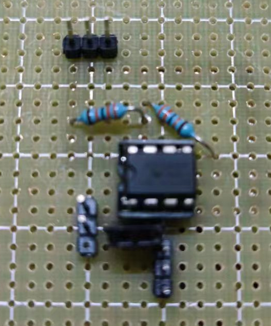 简单的用洞洞板做了个电路,R1和R2分别选用328K电阻(可能也有点误差)。