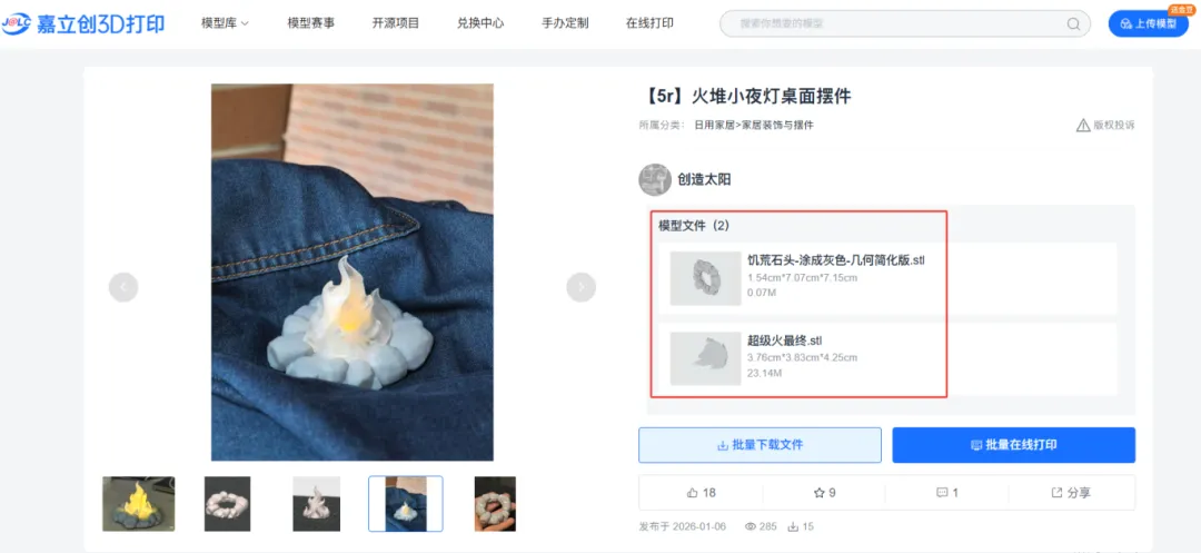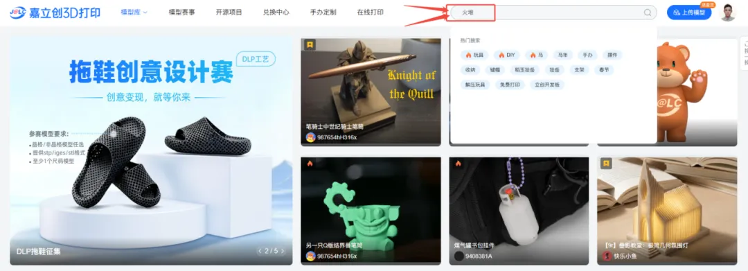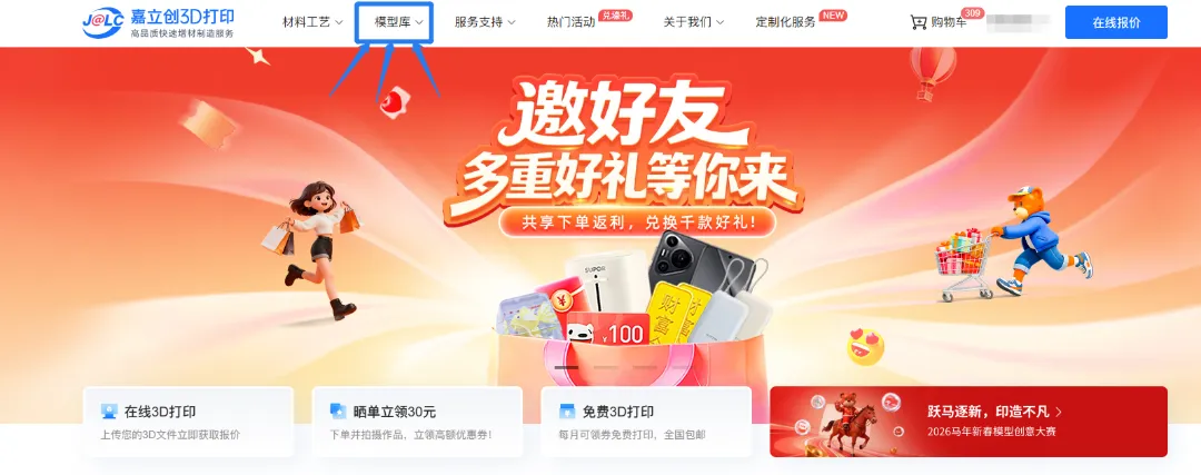①登录嘉立创3D打印官网,点击进入“模型库”页面;