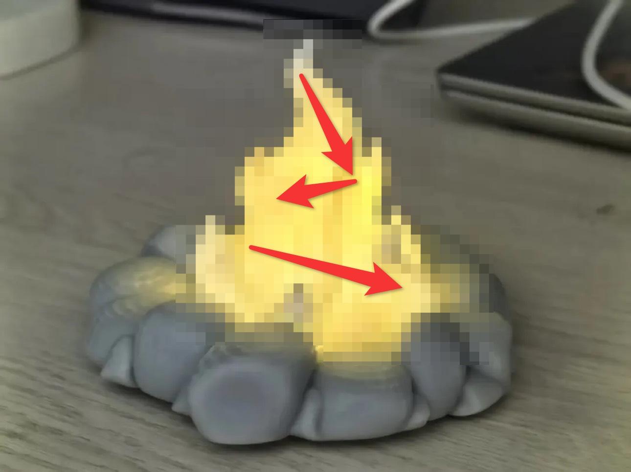现在,有玩家把它做成了真实的桌面摆件,一个同款火堆小夜灯✨