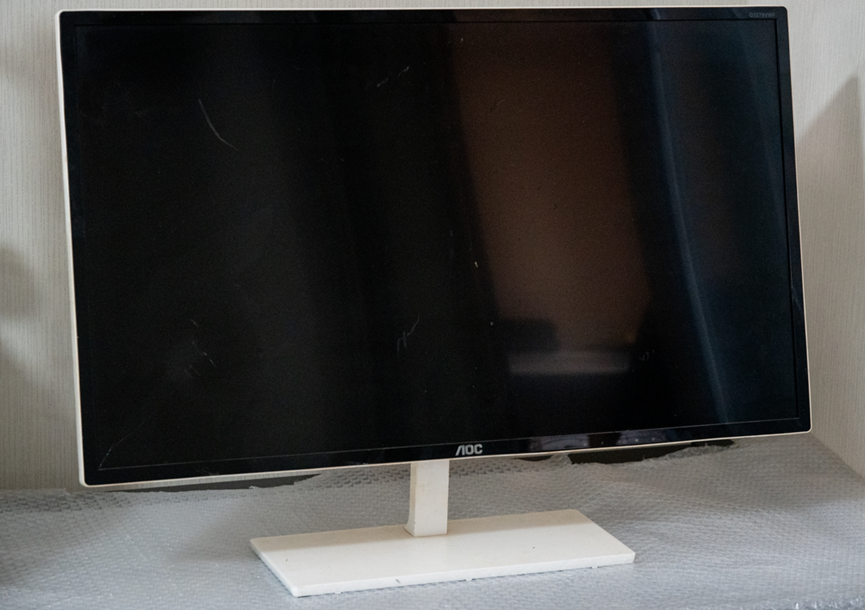 这款27寸的AOC显示器,是附近小区一个大妈送给我的。据她说这个显示器屏幕磕碰坏了,拿去垃圾回收站只能卖个十几块钱,还不如送给我拆解得了!