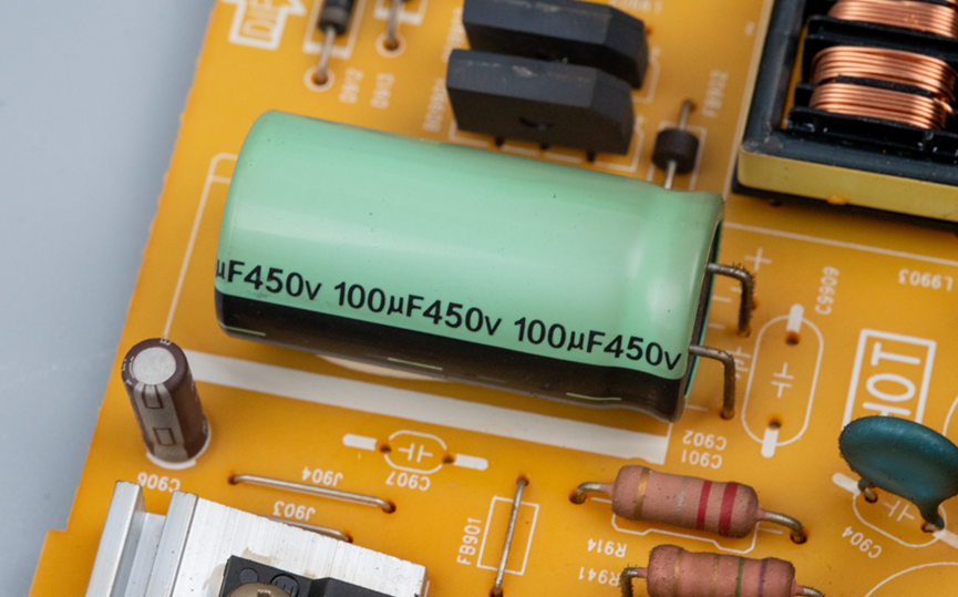 输入电容不小,容值100uF,耐压450V,不管是容值还是耐压值,都很不错。