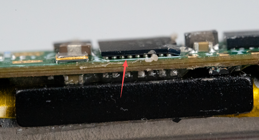 从侧面看这是一颗BGA封装的蓝牙SoC芯片。