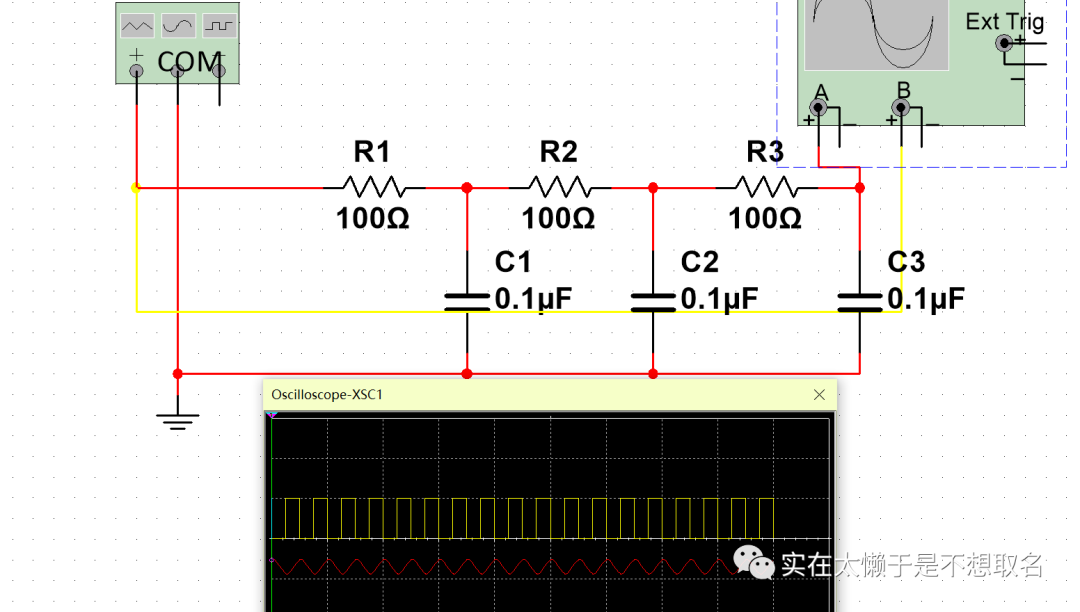 我们可以对信号多进行几次一阶低通滤波(积分)将方波信号逐渐转为锯齿波~三角波~近似正弦波。其中100欧电阻和0.1uF电容组成的低通滤波器截止频率大概为15KHZ。
