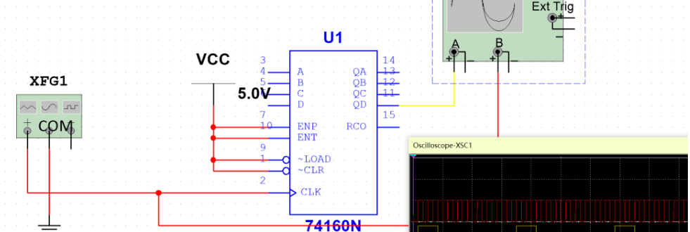 利用74HC160十进制计数器即可完成十分频,同理QA路可实现二分频。