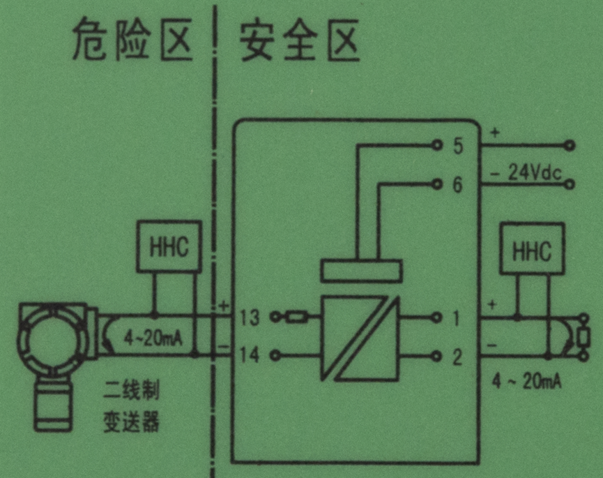 壳子上这个接线示意图就看起来很明确。危险区的4-20mA变送器的,要接入控制室(安全区)的中控装置,需要经过一个放置在安全区的安全栅。这样可以保证不会有过大的能量从安全区泄露到危险区,以此来避免事故的发生。