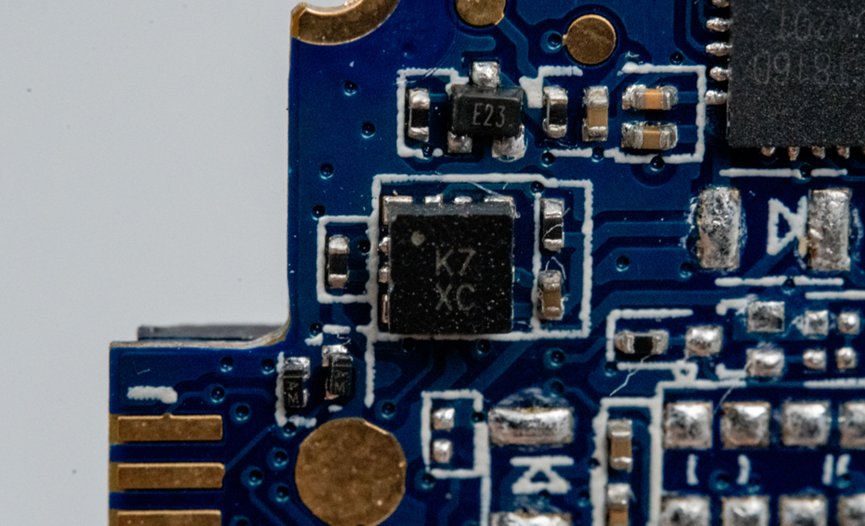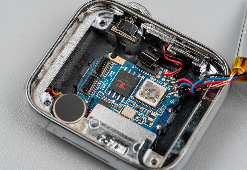 板子上还有一个E1500A低功耗蓝牙芯片。另外,手表里有一个扬声器,而这个MSOP-8封装的器件就是一个单声道音频功放芯片,型号是LTK5135M。