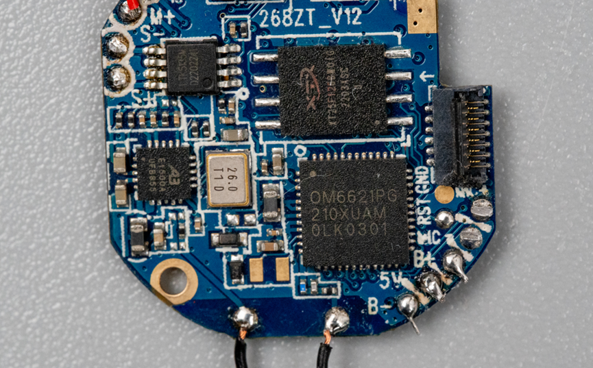 这个板子上的主控芯片是OM6621PG,来自昂瑞微的蓝牙SoC,内核是M4F,集成BLE5.1,主频128MHz。