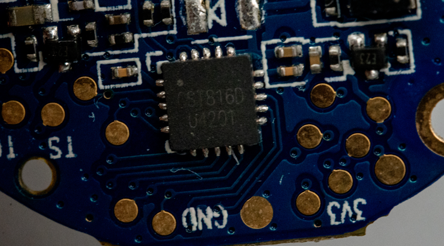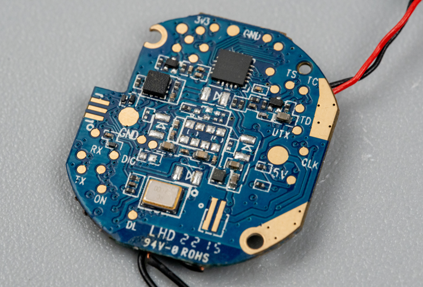 另一颗CST816D是一款IIC接口的触摸屏芯片。从这里可以看出PCB上有很多测试点,整个板子用了沉金工艺。