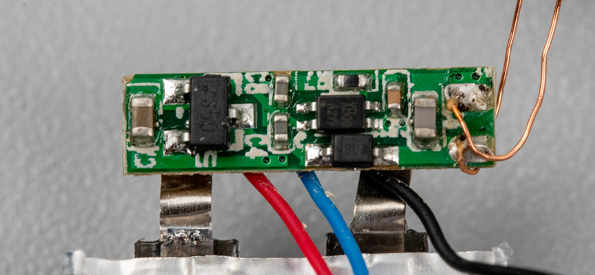 这个无线充电线圈焊接在电池保护板上。