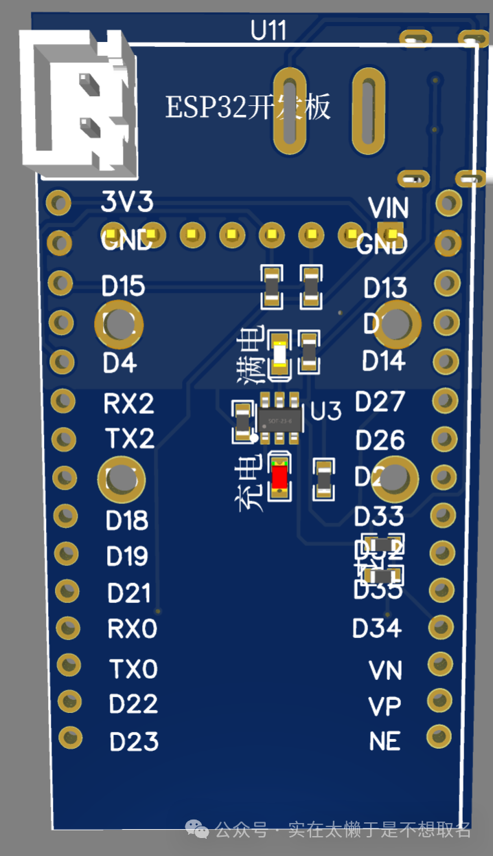 这个设备还是有非常多的缺点的,例如那俩充放电灯珠会被锂电池挡住,然后ESP32可以选择使用芯片而不是开发板(主要是手上有懒得焊接)。