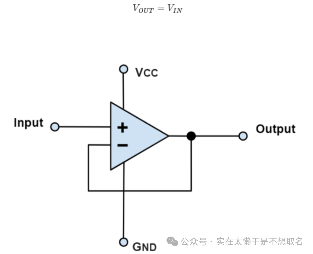 如图为运算放大器作为跟随器,其目的是使输入端的电压能够延续到输出端的电压并起到隔离电路的作用。
