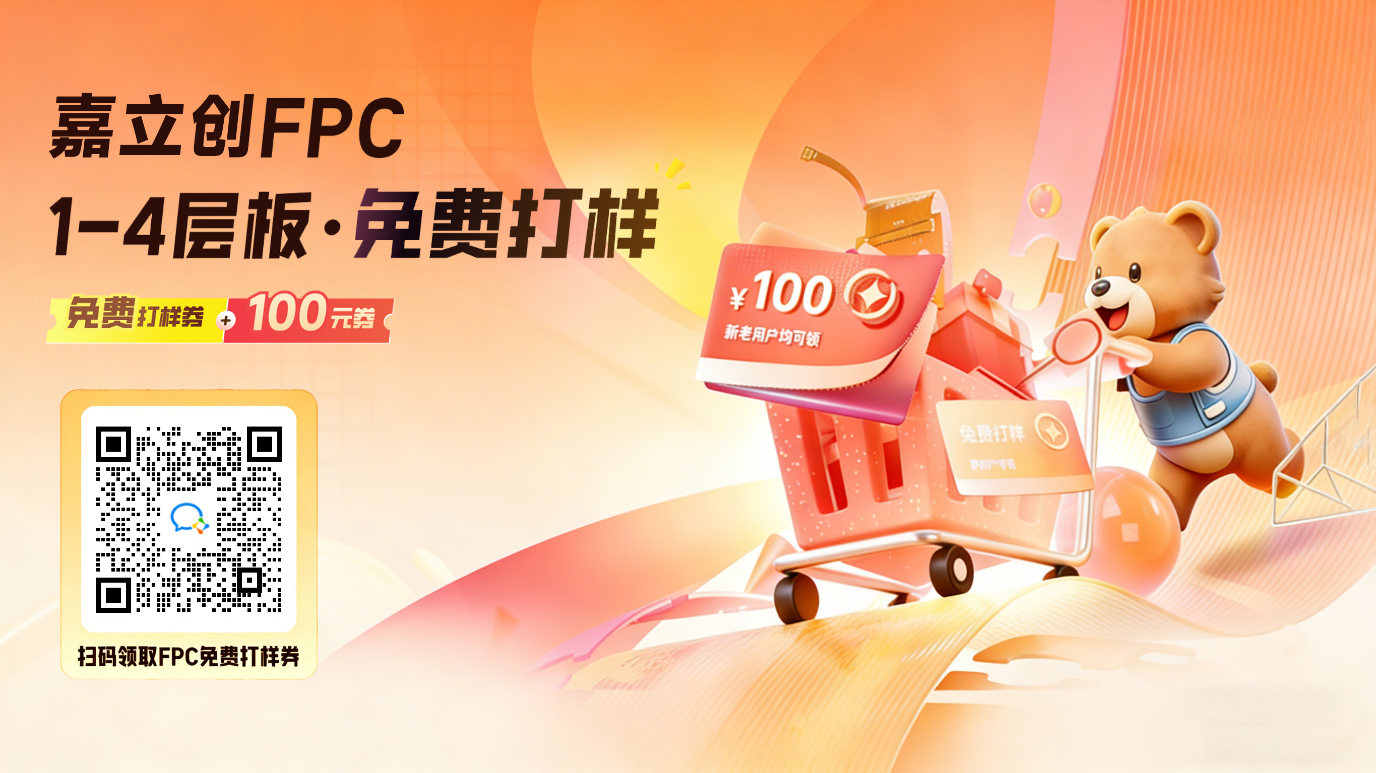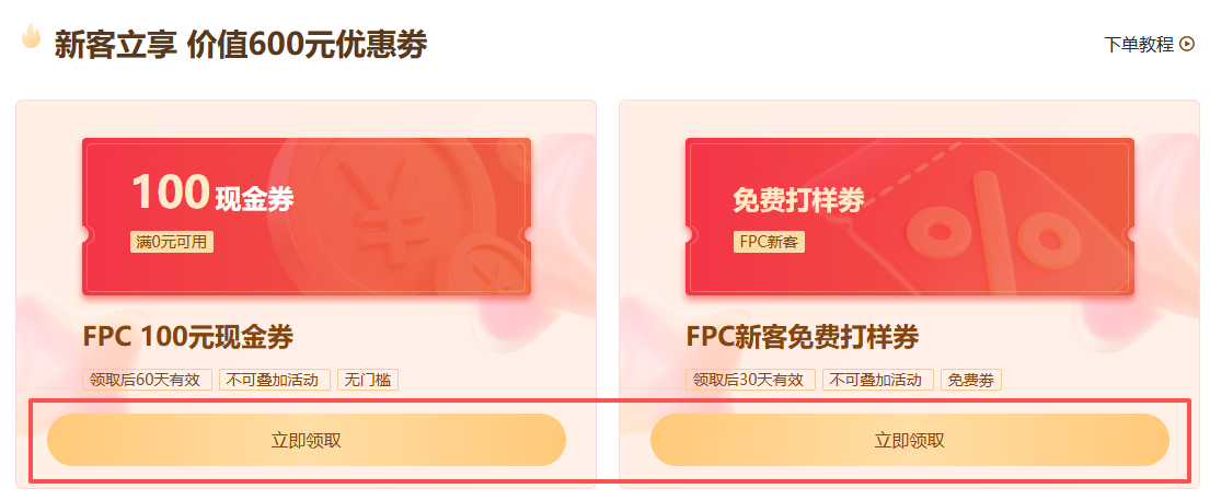 FPC新客户:首月可无条件领取1张FPC免费打样券+1张100元无门槛券