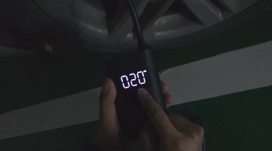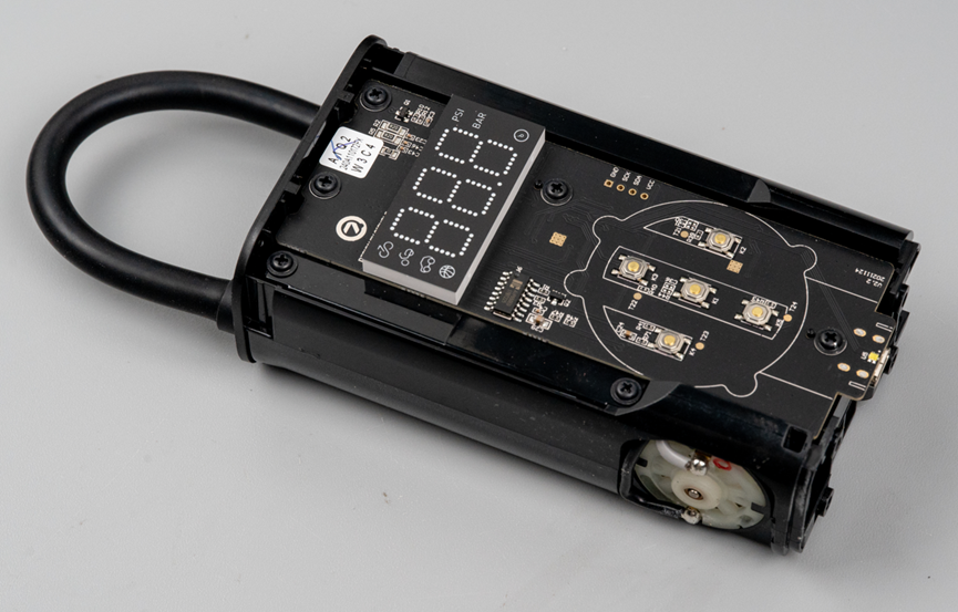 组装回去之后,我充满电下去测试了一下,发现它已经可以成功地把胎压从155给充到245kPa了,而且这时候它还没有因为电量低要停的势头,是我手动给他关停的。