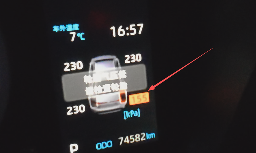 但是很遗憾,充到155它就萎了,停转了。这时候车的胎压显示是155kPa。看来确实不行了,得服老啊。
