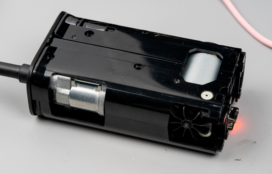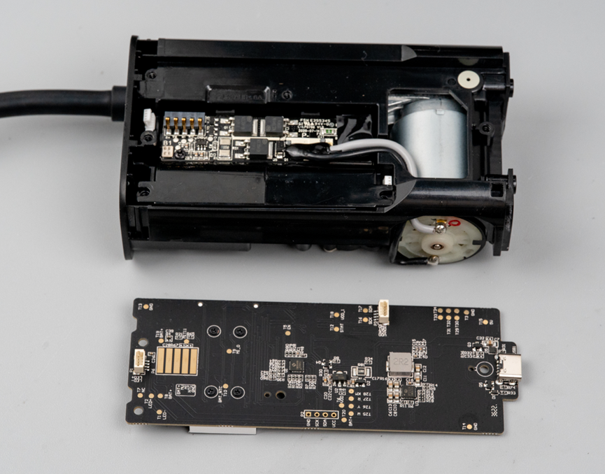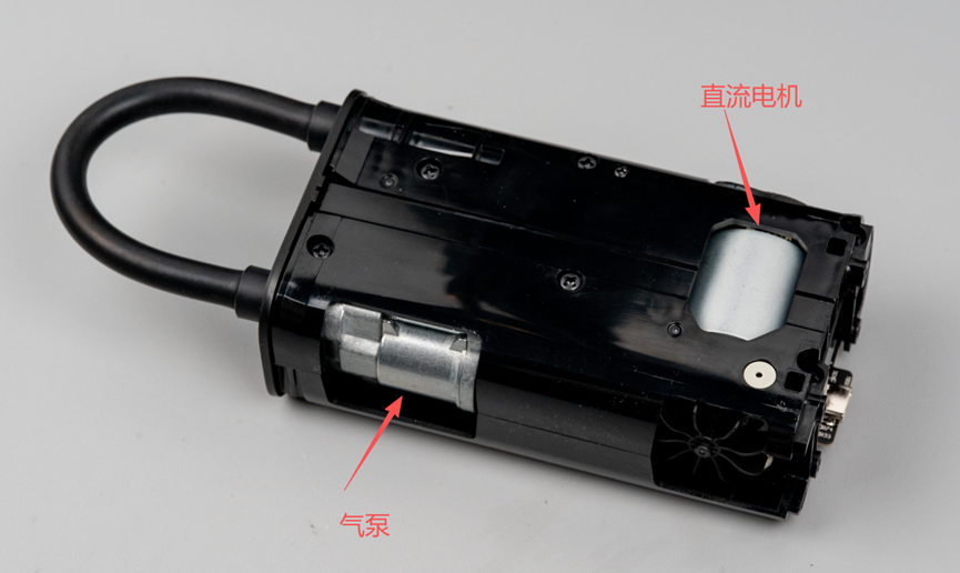 另一面的壳体下可以看到气泵盒直流电机。