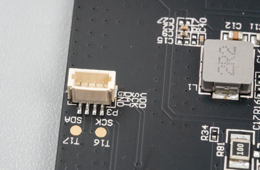这个电路板上还有两个SH1.0连接器,其中图上这个标有SCL和SDA信号,结合引出线连接到了气压计的位置,可以猜测到,胎压测量用了一颗I2C接口的气压计。